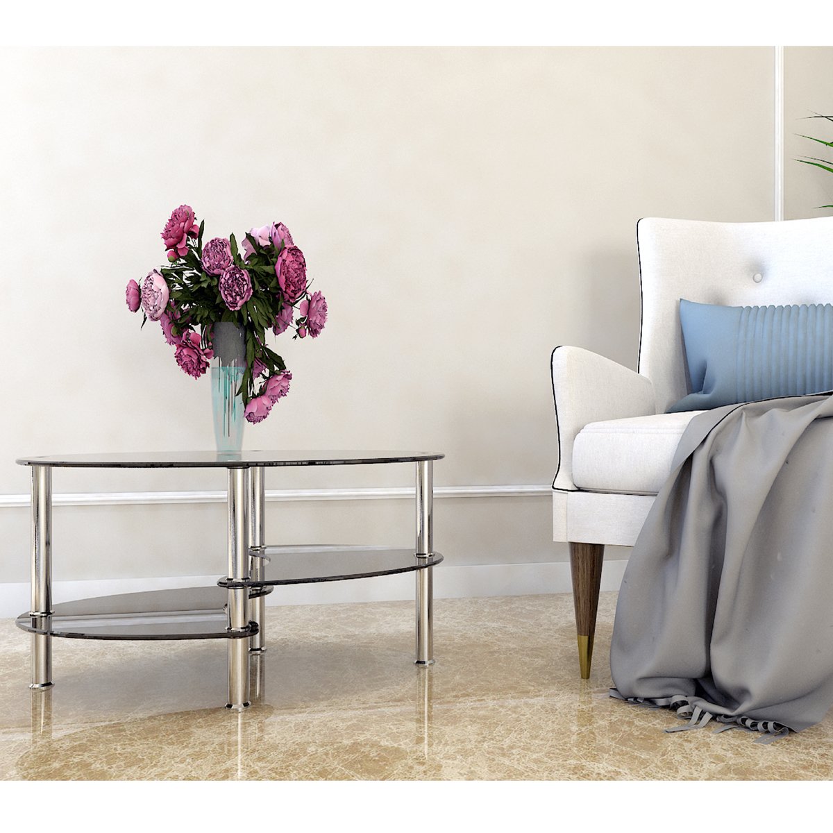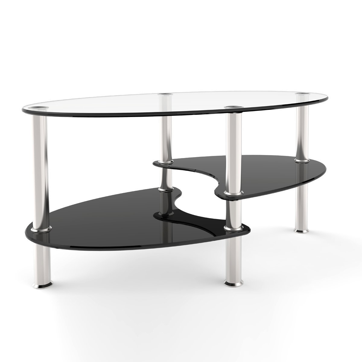 Gold leaf/clear large oval glass coffee table with shelf. 4.7 out of 5 stars. (3) total ratings 3, $99.99 new. By hodedah (63) $ 63 81 $ 75.07. More buying choices $88.99 (2 new offers) 5 out of 5 stars. Oval coffee table its designer versatility. Ryan rove elm 38 inch oval modern two tier black glass coffee table. Use this glass top table for home or business, for an informal dining area, meeting space, coffee table, desk or in front of the tv. Costway tempered glass oval side coffee table shelf chrome base living room clear new. Clear/black large oval glass coffee table set. 4.4 out of 5 stars with 9 ratings. Ktaxon tempered glass oval side coffee table shelf living room black.